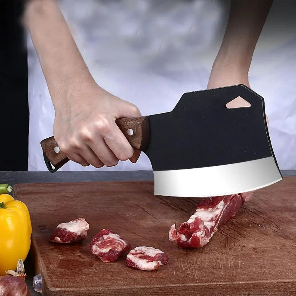 Introducing the DK Chopping Axe Kitchen Chopper. designed for chefs and cooking enthusiasts alike. Crafted with a wood handle. this chef's cleaver hatchet offers a sturdy grip and precise chopping. With its multi-functional design. this versatile knife is perfect for all your kitchen needs.