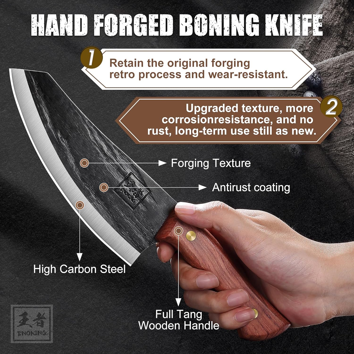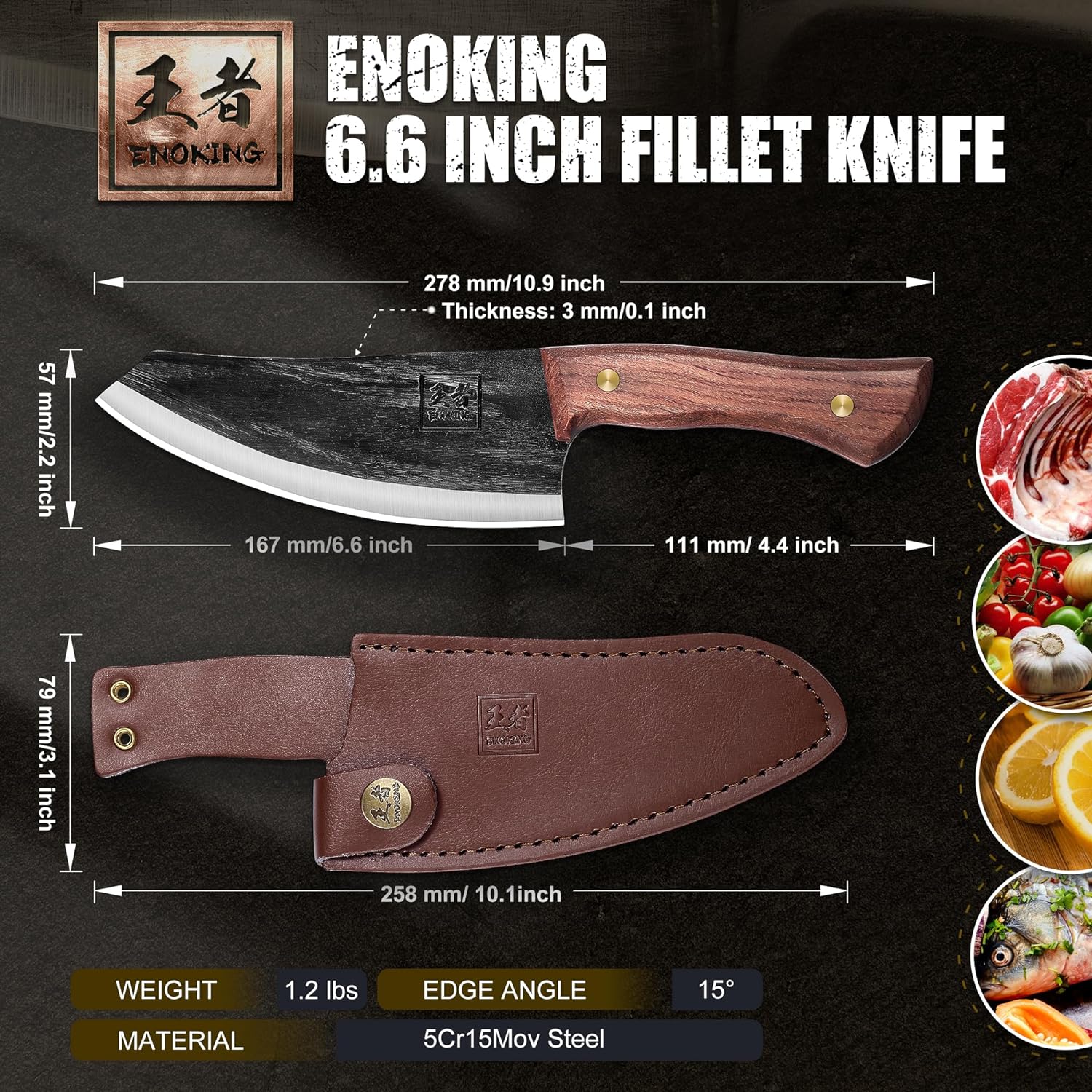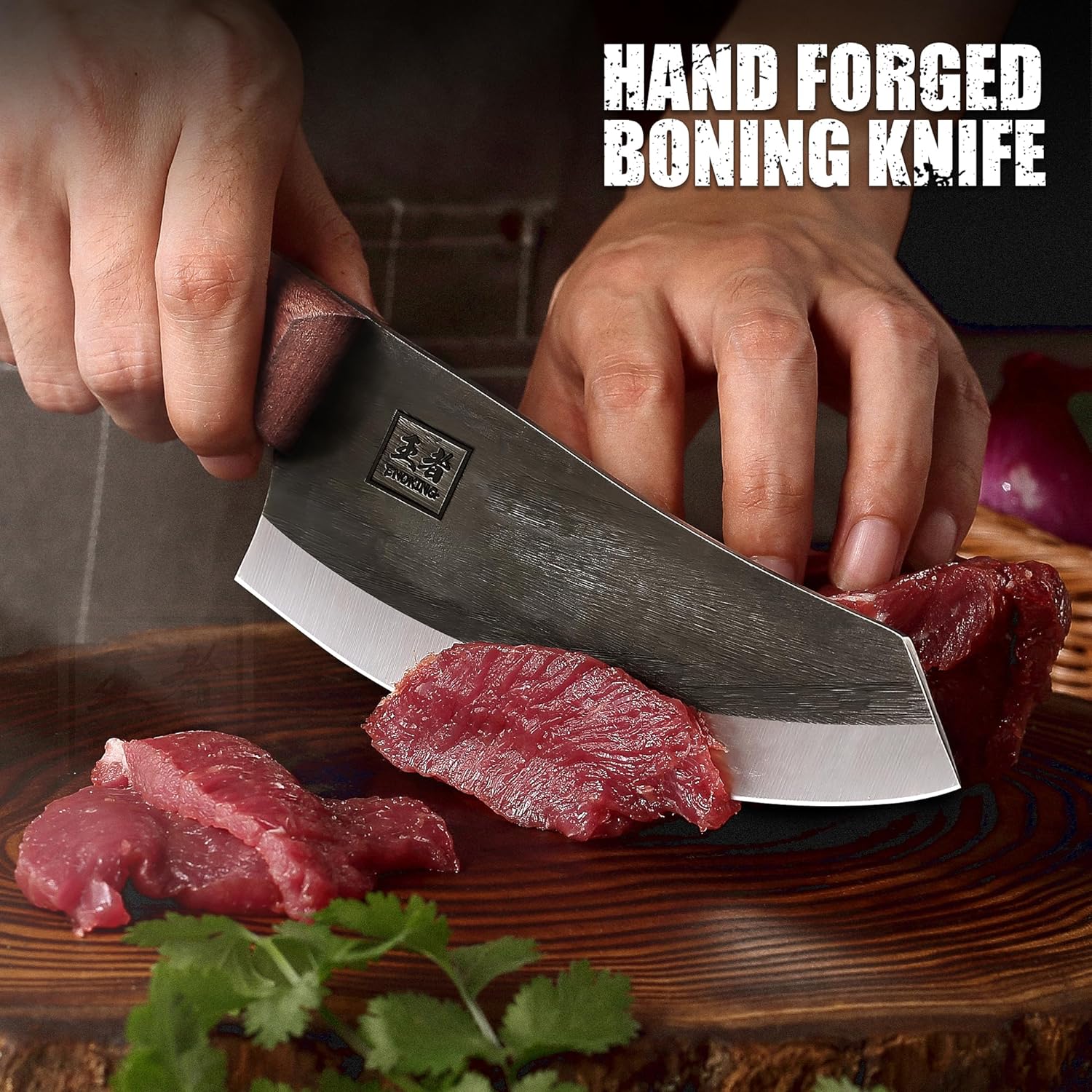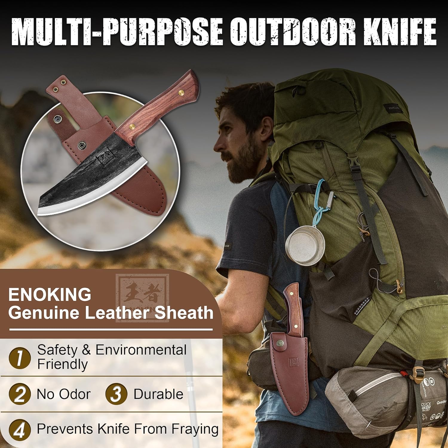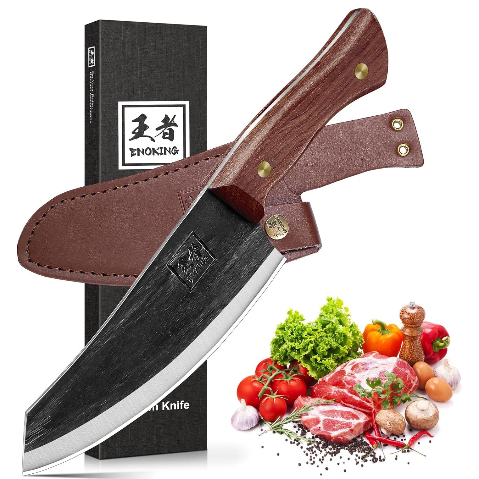 Expertly crafted with high carbon steel. this Nakiri knife from KD delivers precise and efficient chopping for any vegetable. Its ergonomic handle provides a comfortable grip. while the included leather sheath makes it perfect for outdoor use. With its multipurpose design. this chef's knife is a must-have for any kitchen.
